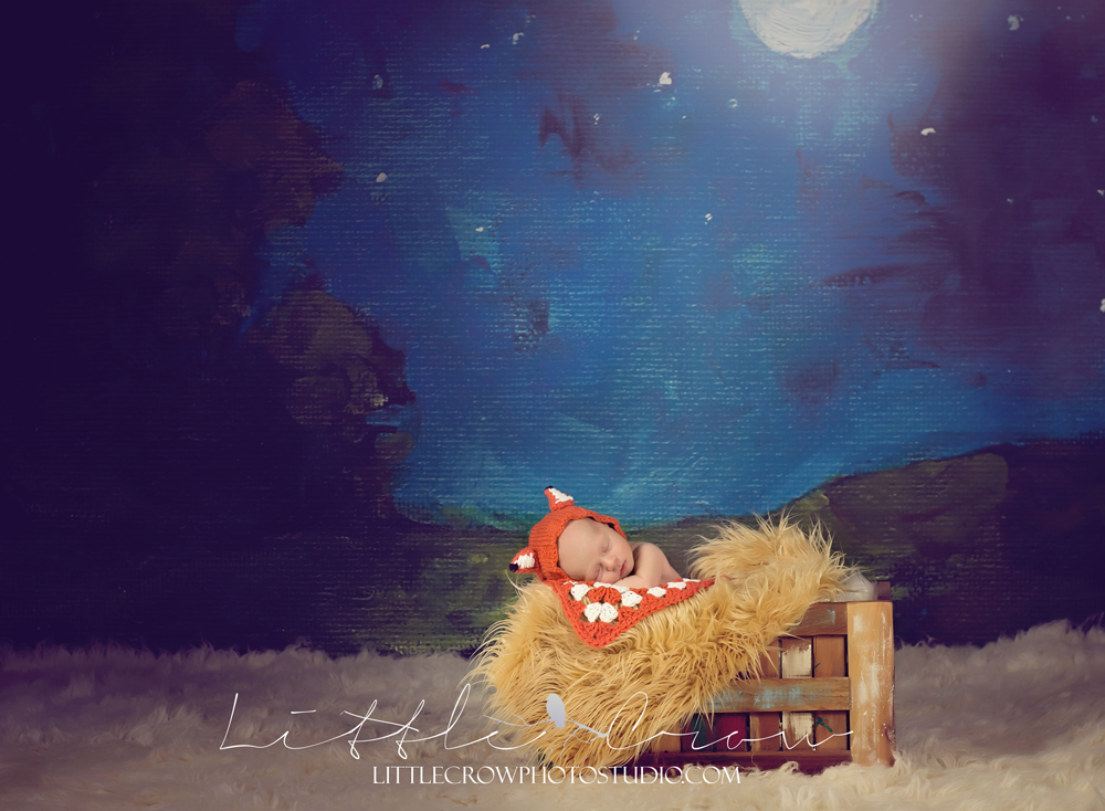 Now, Mr. Nolan really made me work hard, but I didn’t mind a bit :). This normally sleepy little guy was wide awake for the first hour and a half of his session, just looking at me with those big adorable eyes. We had a little talk, a bottle, and a few good minutes of snuggles and out he was. His nursery theme is outdoors/forest theme and foxes are a MUST. I just knew that I had to create a fox in the woods scene just for him.